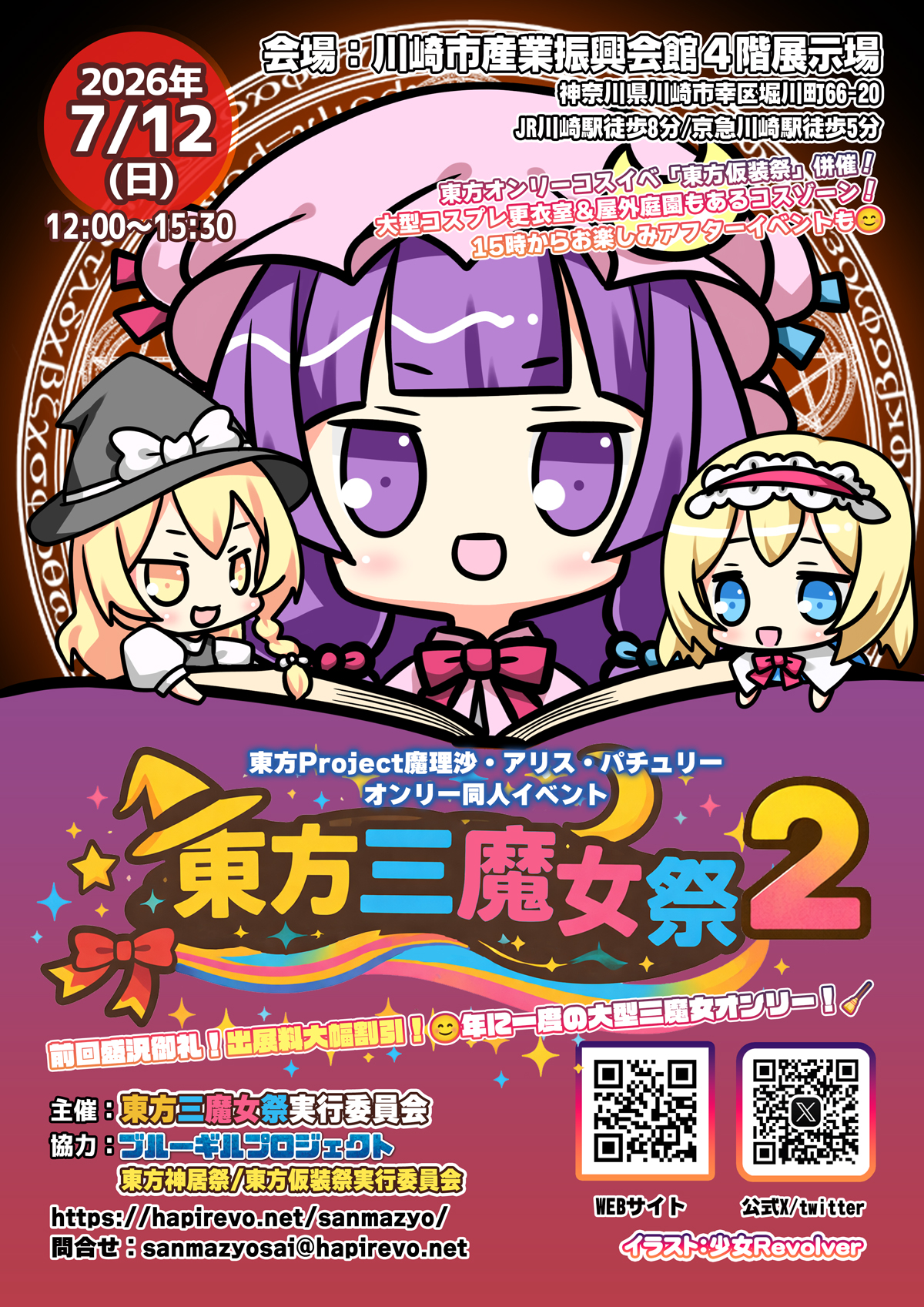 そして、次回の「東方三魔女祭2」の開催が2026年7月12日(日)に再び同会場「川崎市産業振興会館4階展示場+9階」で開催決定!